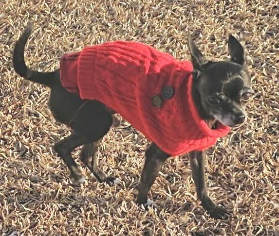Notes: With the wind and cold Sunday and Monday morning, Charlie was made to wear his sweater. He was not a happy camper. He hates sweaters.